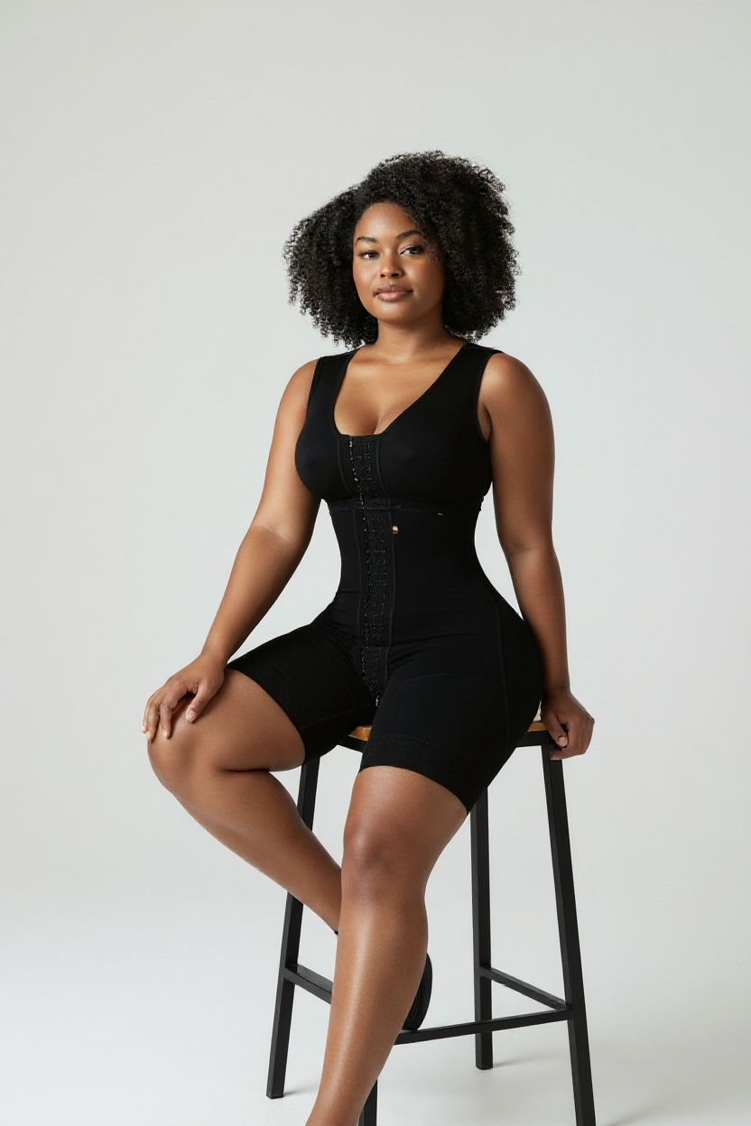 Shapewear colombiano premium con soporte de busto integrado y diseño de estilo corto. La FB720 ofrece compresión de cuerpo completo con un ajuste cómodo que termina arriba de la rodilla.
