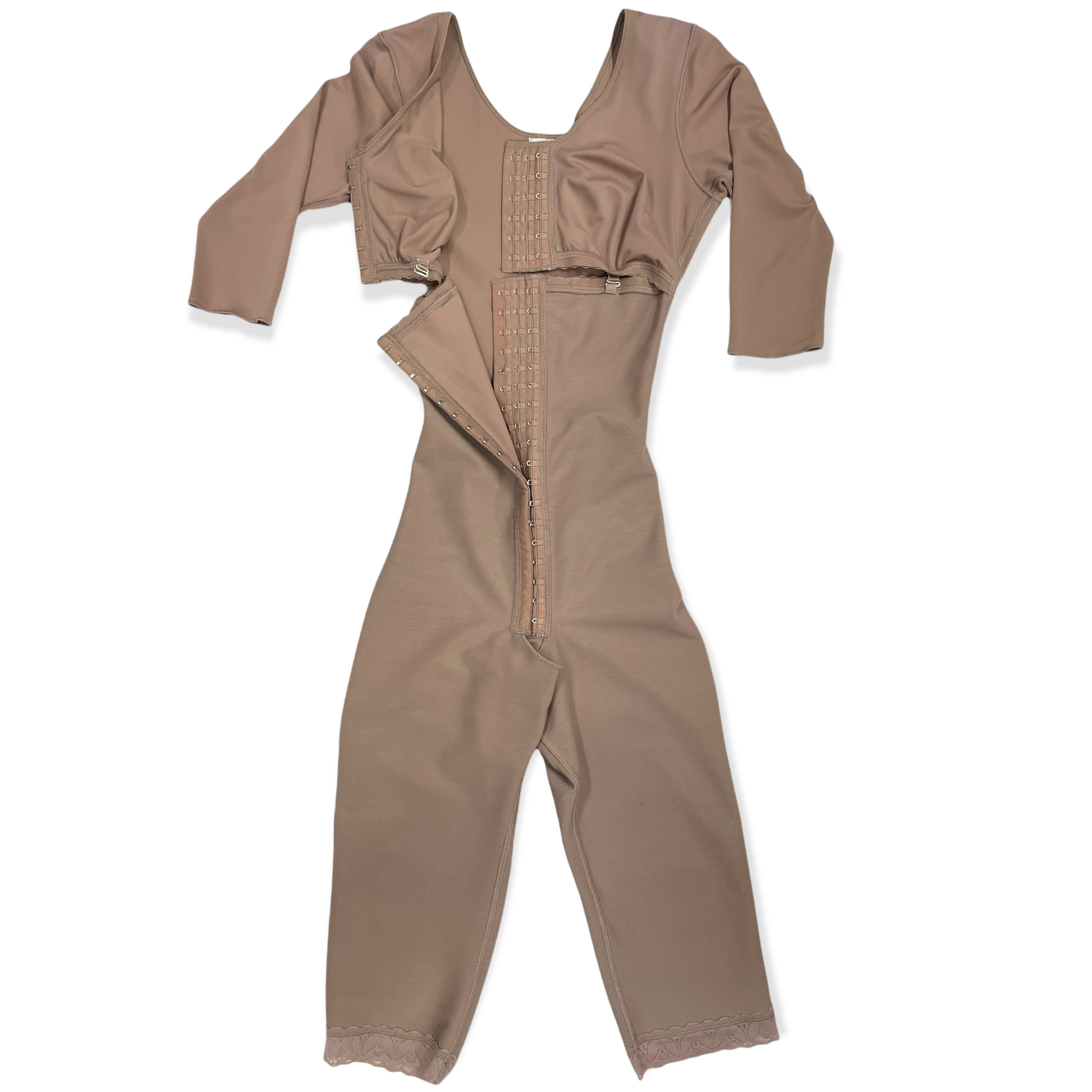 FB717 Full Body Shaping Garment with 3 Hooks, Built-in Bra & Sleeves